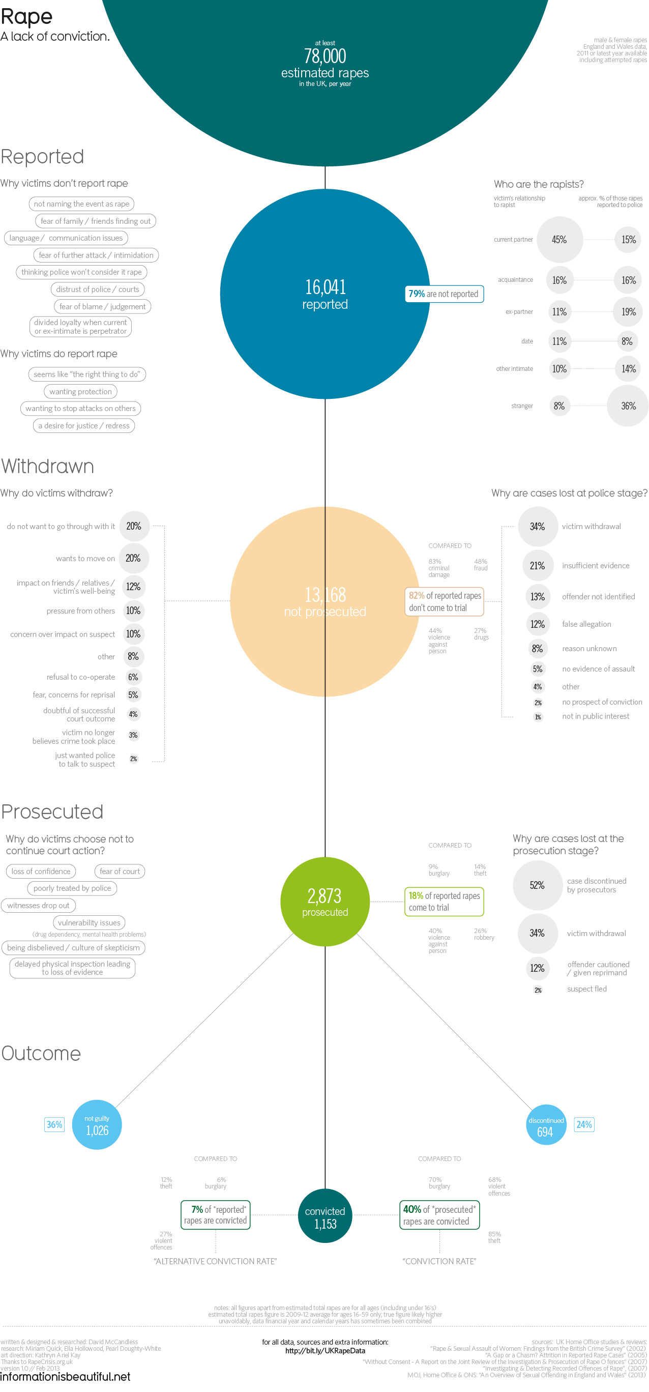 The other inforgraphic which really affected me was one from Information is Beautiful. This infographic focuses on the number of rapes that occur in the UK and trickles down to show then the number reported, the number not prosecuted, the number prosecuted and then the number convicted. Branching off from these are different related statistics that further prove the point that rape is not receiving the attention it deserves.