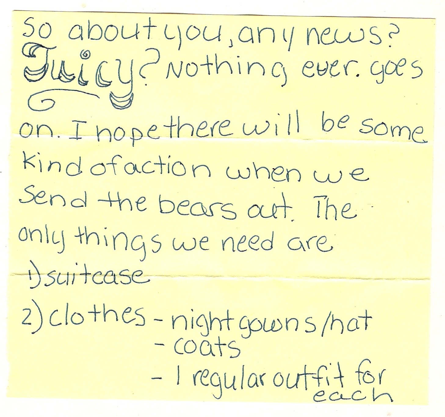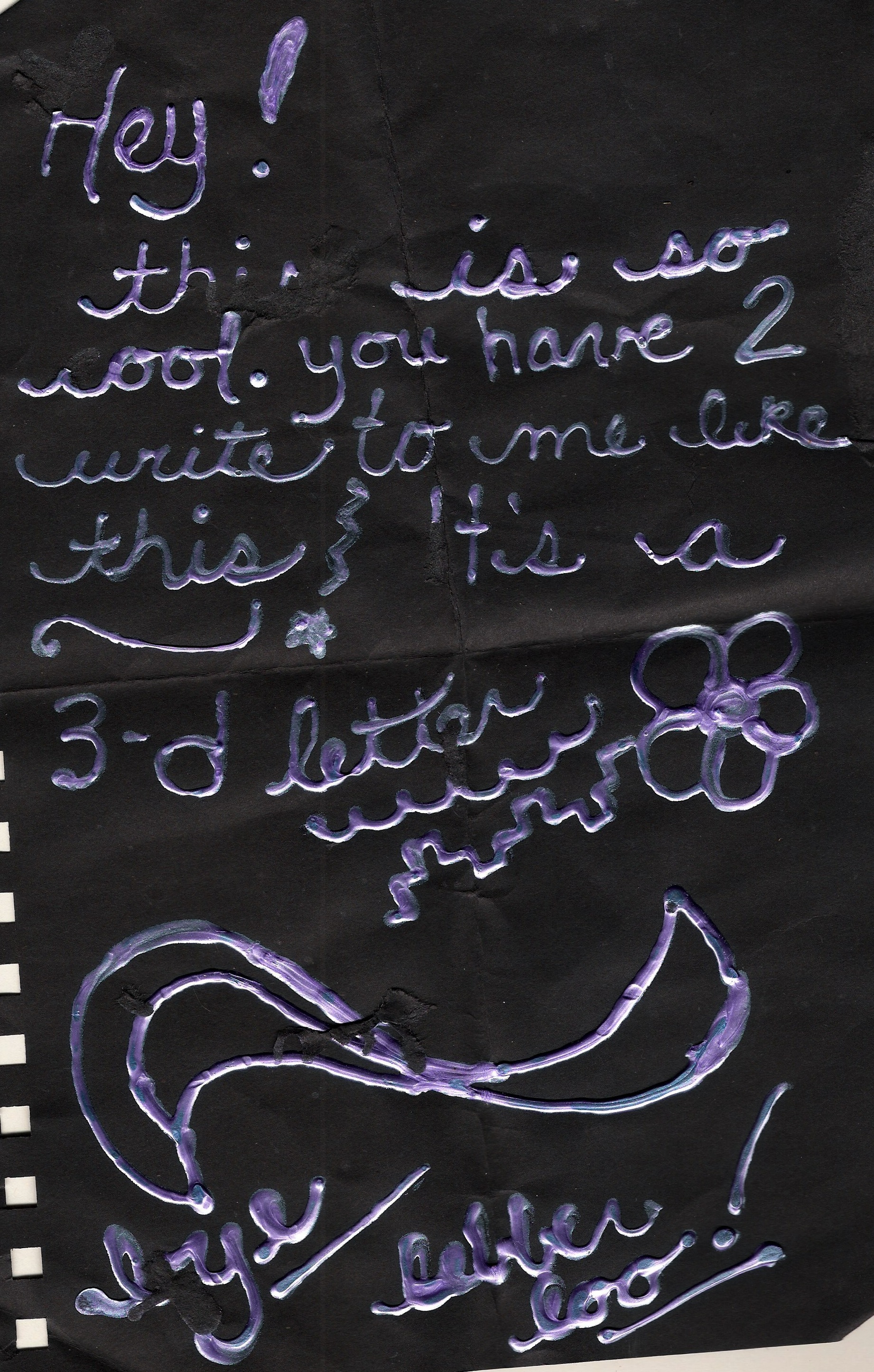 My class was probably one of the last in our school to use the D’Nealian books, to learn cursive at all, and once we learned cursive, it wasn’t enforced, so that my handwriting eventually broke down into the print-cursive hybrid it is today. I don’t know if any of you had similar experiences, but by middle school, I was spending a lot of time trying to figure out what I wanted my handwriting to look like, and my best friend was too, and the notes we exchanged were the stage for those experiments (as well as lots of other more troubling experiments in expression and identity-shaping). The notes below sample this transformation. Most of them are written in my friend’s hand; I always admired her round, playful letters, and the curls of her cursive. My writing was more narrow and proper, rule-bound—which, come to think of it, is pretty much how my classmates thought of me, so maybe that’s why I didn’t care for my hand.