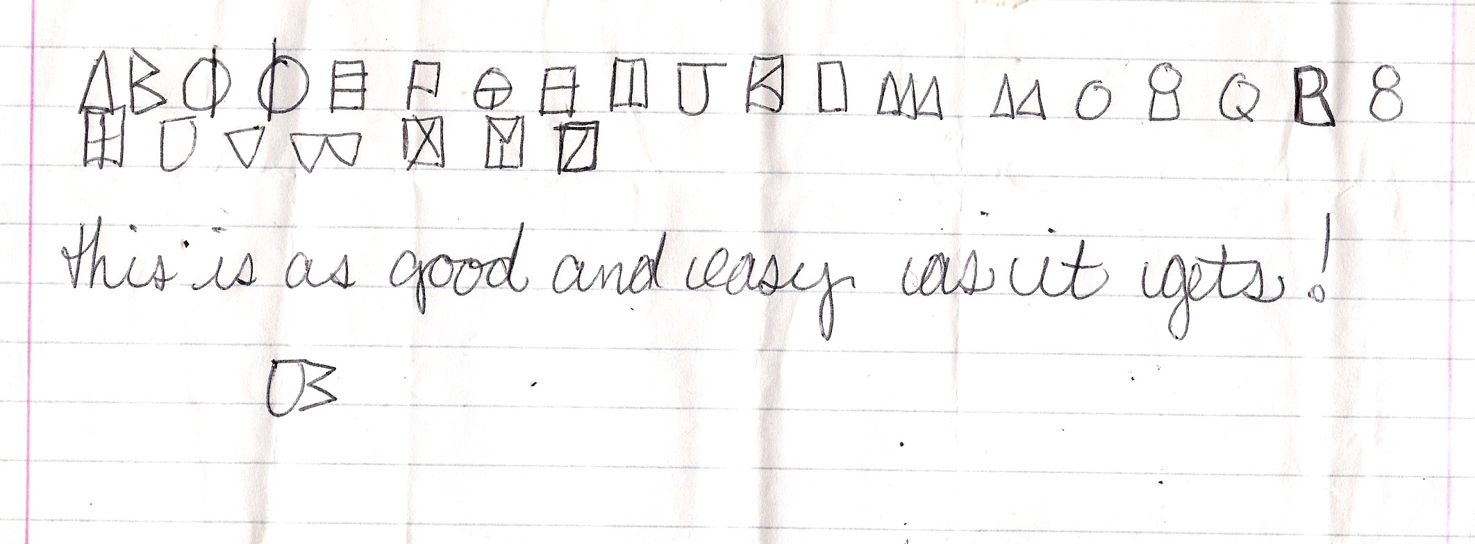But I (somewhat) persevered. I settled on making a digital version of the code in the above note (we were always coming up with new codes that made writing things like “Sit by me at lunch?” more work than they were worth). I’ve only gotten to the letter M, and I feel like many hours and days later I am only just now acquiring the grid-puzzle-friendly vision to actually do this well. If I ever finish this font to satisfaction, I would call it Maritime, for the boating flags that it reminds me of, which people sometimes string along their porches in the Thousand Islands.