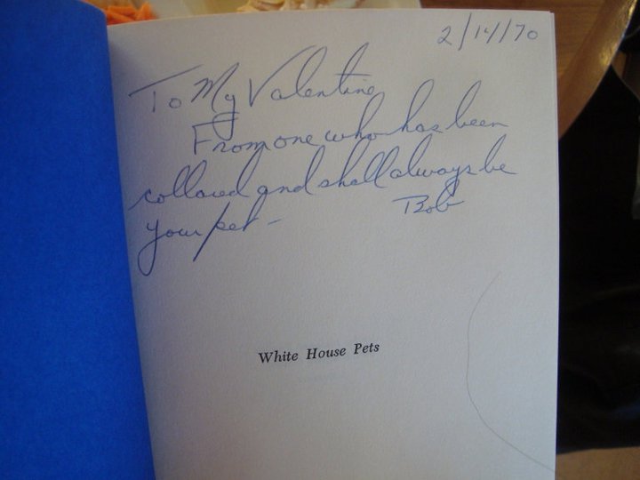 Animals are, arguably, marginal in academia — at least, that’s what I figured in my final year of college, when I decided to write every other paper about animals. It was in my final semester when an anonymous donor dumped an entire shelf of free animal books in the library. I knew no professors studying animals (beyond the one admitting he’d never read Heidegger because his cat always climbed on top of the book when he tried — a la http://petsonacademia.tumblr.com/), and I still wonder who gave up all of those wonderful books. I took almost all of them, and gave one away as a gift: Margaret Truman’s White House Pets. I kept this picture, though: