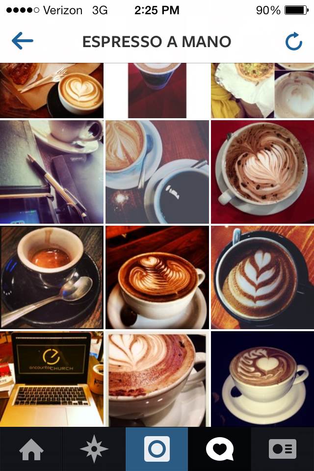 I begin to realize how many people within Pittsburgh come to this particular coffee shop every day to write, who perform their own, very similar rituals, using the same or similar material tools. They all take pictures to mark themselves and this ritual somehow, to create some material evidence of what they are doing, of what they’ve done. Mostly for themselves? Yet, something like Instagram does not only allow an individual to keep a localized and personal record through their own profile and followers. It does do this, somewhat in the manner of a scrapbook. But it also is capable of confronting the individual “writer” (if we choose to call taking photos part of the material process of writing) with the widespread and general nature of what they do and how they do it, even if the what and how are motivated by the personal and the local, feel like the personal and the local.