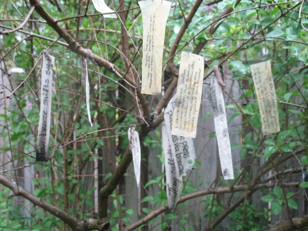 The first is a visual poetic project inspired by Ian Hamilton Finlay’s Little Sparta gardens. Although while his inscriptions are on stone, mine were crafted on sheets of natural fiber paper that, over time, disintegrated from exposure to the elements. I only documented the work as initially installed, as I moved from that location soon after its “completion.” All I know is that it is no longer there.