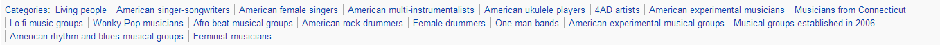 The latest single from tUnE-yArDs was released today, and I played it for my roommate (and suddenly no one is surprised that I made the Pitchfork Bot). Because neither of us could quite remember Merrill Garbus’s name, I ended up on Wikipedia, and that’s when I noticed something – re-noticed something – interesting.