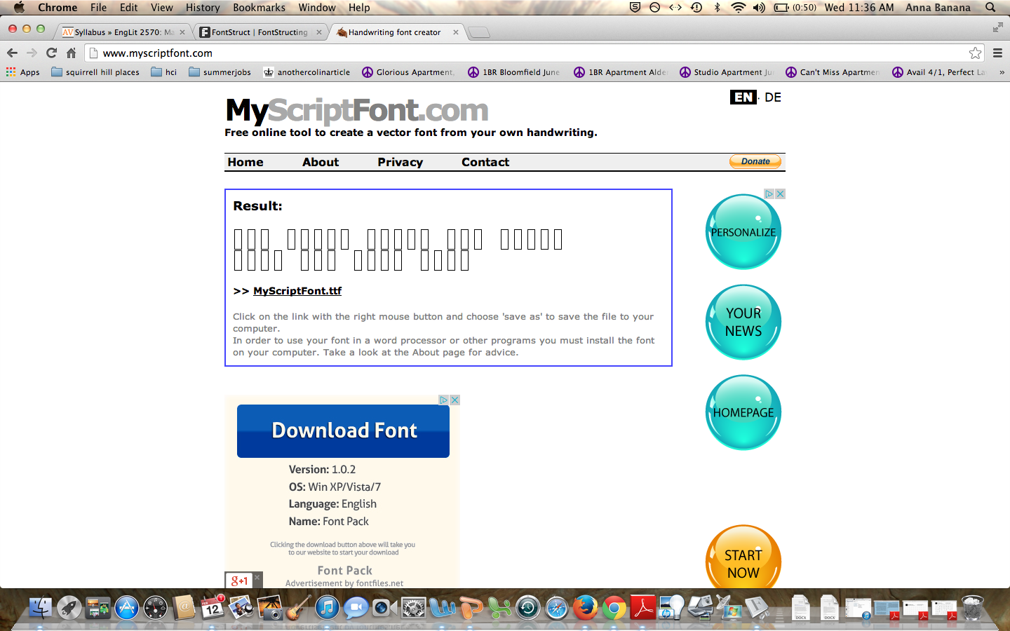 This morning I switched over to myfontscript. I’m not really sure what went wrong here. As you see, both of my font attempts ended up being super modernist and abstract, and not dissimilar to furniture in appearance. I’ve included my template to give you an idea of just how wrong things went. I haven’t had time to investigate why though. I’m hungry. Also worthy of note: things went wrong on the template too. I couldn’t really lilt as desired because they have these guiding letters that lilt in a Kindergarten-teacher, not a Seussian way. I kept spazzing out and following those lines instead of doing my own thing.